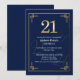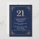 Elegant Blue Gold 21st Birthday Party Invitation