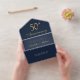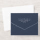 Elevate your 50th wedding anniversary celebration with this elegant dark navy blue all-in-one invitation featuring "50th Anniversary," the names of the couple, and "Rsvp" in a classic calligraphy script, the invitation details in simple lettering, and a white tear-away response postcard providing a convenient RSVP option for your guests. All of the text on the inside is rendered in your choice of genuine gold, silver or rose gold foil for a sophisticated touch.