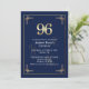 An elegant modern design featuring a gold 96 number with gold edges and frame and a low-key number in the background. Customise the details for a unique and chic Birthday Celebration.