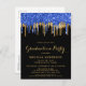 Elegant Blue Gold Black Glitter Drips Graduation Invitation Postcard