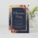 Elegant Blue Gold Botanical Christmas Party Invitation