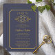 An elegant banner scroll and scalloped frame gold tone and blue graduation party invitation design that can be personalized for high school, college, university or vocational school graduations. Design by Holiday Hearts Designs (all rights reserved).