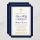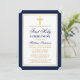 Elegant Blue Gold Cross First Holy Communion Invitation