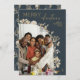 Elegant Blue Gold Floral 1 Photo Christmas Card