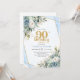 Elegant Blue Gold Floral 90th Birthday Party Card