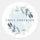 ELEGANT BLUE GOLD FOLIAGE WREATH PROFESSIONAL CLASSIC ROUND STICKER