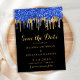 Elegant Blue Gold Glitter Drips Save The Date Invitation Postcard