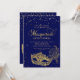 Elegant Blue Gold Glitter Masquerade Quinceañera Invitation