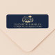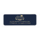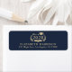 Elegant dark blue graduation return address label featuring "Class of" and the year in a light gold illustration of laurel wreath incorporating a grad cap topper and diploma and the graduate's name and address in light gold modern typography.