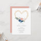 Beautiful deep blue and pink flowers in a pretty rustic gold heart. The back is a pretty mauve, coral mix to match single flower on invitation. This is a gorgeous invitation from casual to pure elegance. So pretty.