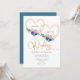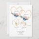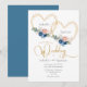 Elegant Blue Gold Heart Floral Wedding Invitation