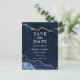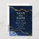 Elegant Blue Gold Marble Geode Save The Date Announcement Postcard