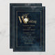 Elegant Blue Gold Modern Minimalistic Wedding Invitation
