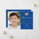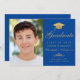Elegant Blue Gold Script Cap Photo Graduation Announcement