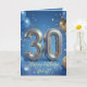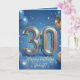 Celebrate a milestone 30th birthday in style with this elegant and festive greeting card. Featuring a rich blue background decorated with realistic gold and blue party balloons and dazzling gold confetti, this design is perfect for making an impact. The centerpiece is a stunning, 3D sparkly multi-colored balloon typography showcasing the number "30". Easily personalize the elegant gold script on the front with the recipient's name, and customize the heartfelt, inspirational message inside to make it truly special. Perfect for a son, brother, husband, or friend celebrating their big 3-0.