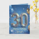 Elegant Blue Gold Sparkly Balloons 30th Birthday Card