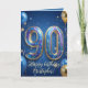 Celebrate a monumental milestone with this striking royal blue and gold 90th birthday greeting card. Featuring eye-catching 3D gold typography filled with colorful sparkles, festive balloons, and elegant confetti, this design is perfect for a father, grandfather, or friend turning ninety. The inside includes a humorous "Limited Edition" message celebrating their nine decades of life, which is sure to bring a smile to their face. Update the names and details to create a memorable, high-quality keepsake for their very special day!