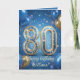Elegant Blue Gold Sparkly Balloons 80th Birthday Card