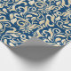 Elegant Blue golden Damask floral pattern Wrapping Paper