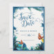 Elegant Blue Green Botanical Butterfly Save the Date Wedding Invitation .