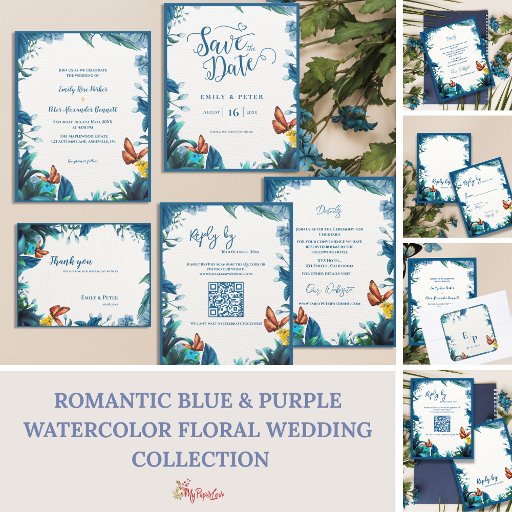 Blue Green Botanical Butterfly Wedding StationeryDesigned by Mypaperlove Designs