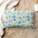 Elegant Blue Green Watercolor Floral Pattern Lumbar Cushion