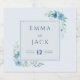 This elegant blue floral wedding wine bottle label design features soft watercolour blooms and greenery framing classic serif typography on a pale background. Perfect for dressing Champagne, prosecco, or wine at your reception, it coordinates beautifully with matching blue wedding stationery. The refined layout and cool botanical palette suit modern, coastal, and garden celebrations.