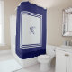 Elegant blue initial monogram Shower Curtain. Beautiful seamless toile de jouy pattern Blue on white background.Toile prints are an all time rage at the moment, this is an elegant and ornate vintage toile de jouy featuring exotic damask pattern, a fun style that is currently trending for home decor, clothes, mobile and Ipad cases, invitations and much more. The design is classic and timeless with stunning colour. You can change all text colours and fonts, click to customise further underneath the text customisation area this will take you into the design tool. A unique girly gift for birthday, holidays and any special occasion. Whether for valentines day, Christmas or as a gift in general it makes a great gift idea