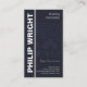 In an elegant dark blue cover, card is divided into two portions. A vertical white line demarcates the two sections. Over at the left wall is your inverted Name in bold. An underlying grey abstract home design is over at the right side of the card. At the top of this artwork is the job title. Southwards to this, at the base is the slogan option and the contact details.