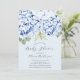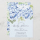 Beautiful blue hydrangea baby shower design set on a pale blue background with a coordinating back for an extra special touch.