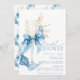 Elegant Blue Hydrangea Bow Champagne Bridal Shower Invitation