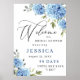 Elegant Blue Hydrangea Eucalyptus Engagement Party Sign.