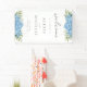 Modern elegant wedding welcome sign featuring blue hydrangea watercolor floral design.