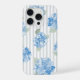 Elegant Blue Hydrangea Pattern Gray Stripe iPhone Case