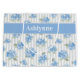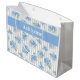 Elegant Blue Hydrangea Pattern Gray Stripe Name Large Gift Bag