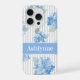 Elegant Blue Hydrangea Pattern Grey Stripe Name iPhone Case