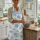 Elegant Blue Hydrangea Sage Green Gray Stripe Name Apron