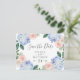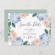 This elegant blue hydrangea save the date postcard is perfect for a spring or summer wedding. The classic floral design features soft powder blue watercolor hydrangeas accented with neutral blush pink flowers and green leaves.