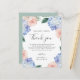 This elegant blue hydrangea thank you reception card is perfect for a spring or summer wedding. The classic floral design features soft powder blue watercolor hydrangeas accented with neutral blush pink flowers and green leaves. Place these cards at the table setting for each of your guests at your wedding reception. Personalise the card with your names and a special thank you message.