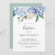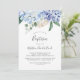 This elegant blue hydrangea white baptism invitation is perfect for a spring or summer baby baptism. The classic floral design features soft powder blue watercolor hydrangeas accented with neutral blush pink flowers and green leaves.