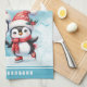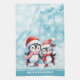 Elegant Blue Ice Skating Penguins Family Christmas Tea Towel