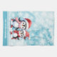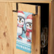 Create a personalised blue Christmas kitchen towel with a festive design that features a cute ice skating couple of penguins on a snowy blue background with elegant snowflakes. Use the template to type your family name or a saying for the unique kitchen decor for the holiday season.