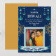 Send warm wishes and festive cheer with this vibrant custom Diwali holiday card! Featuring a rich blue background adorned with traditional hanging diyas, intricate mandala designs, and a beautiful rangoli-inspired border, this card is perfect for celebrating the Festival of Lights. The central photo frame allows you to personalise with your family photo, while the editable text makes it easy to include your family name and year. A joyful, colourful, and heartfelt way to connect with loved ones during this special time of year!