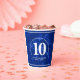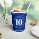 Celebrate the invaluable contributions of employees with these commemorative 10 years of service paper cups, which feature elegant block lettering on a royal blue marble background. Customise with message, employee name, and years of service. Reverse shows identical design.