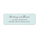 This elegant label features a minimalist design with a soft blue background and dark brown text, creating a sophisticated contrast. The layout is centered, showcasing a flowing script font for the names and a smaller serif font for the address, emphasizing clarity and personalization. With ample negative space and well-spaced typography, this label exudes a calm and refined mood, perfect for formal occasions or personalized stationery. Its modern aesthetic makes it ideal for weddings, invitations, or any special event where a touch of elegance is desired.