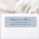 This return address label features a simple, elegant layout with centred text on a solid light blue background. The design uses a soft pastel colour palette and combines an elegant cursive script for the names with clean serif typography for the address, creating a sophisticated and organised appearance. Its minimalistic style emphasizes clarity and tranquillity, making it perfect for those who appreciate understated elegance in their stationery.