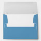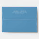 This wedding envelope features a minimalist design with a solid blue background and clean, centred typography. The layout is simple yet elegant, utilising white text for the names and address to create a striking contrast against the blue. Perfect for formal occasions like weddings, this design emphasizes clarity and sophistication through its modern aesthetic and balanced composition. Its understated style makes it ideal for those who appreciate simplicity and timeless elegance in their stationery choices.