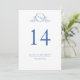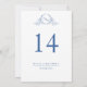 Elegant Blue Monogrammed Wedding Table Number