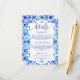 Crafted with meticulous attention to detail, the card features a captivating blue Moroccan tile pattern that adds a touch of elegance to your wedding stationery ensemble. Its timeless design sets the perfect tone for your special day, creating an atmosphere of opulence and romance.