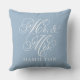Elegant Blue Mr and Mrs Script Custom Monogram Cushion